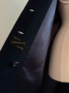 A timeless example of understated mid-century elegance, this 1960s coat is tailored in luxuriously soft 100% pure cashmere. The silhouette is clean and refined, featuring a pointed collar, long set-in sleeves, and a row of classic buttons down the front. Vertical welt pockets at the hips add practical ease, while the deep navy hue emphasizes the coat’s sophisticated simplicity. Fully lined in satin for a smooth drape, this piece embodies the quiet luxury and impeccable craftsmanship that defined the era’s finest outerwear.
