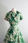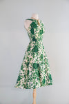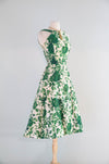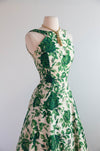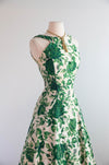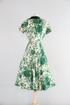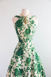 Gorgeous 1950's Emerald Rose Print Party Dress By Estevez / Small