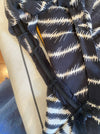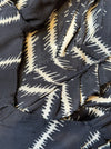 This iconic evening gown captures the essence of Madame Grès’ early modernist vision and the sculptural sophistication that would come to define her couture legacy. Executed in fluid black and ivory silk with a dynamic “zebra” motif, the dress bears a striking resemblance to the famous 1938 Harper’s Bazaar photograph of Lisa Fonssagrives by George Hoyningen-Huene—one of the most enduring fashion images of the pre-war era. In fact, the only thing different from the dress in the photograph is the interpretation of the bodice, a detail that a couture client could request to have changed in order to suit their personal taste.The fabric and design are identical otherwise.