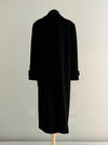 This impeccably tailored 1980s black wool overcoat exemplifies the minimalist sophistication and quality craftsmanship that defined high-end American outerwear of the decade. Made from luxurious Worumbo wool by Forstmann, a fabric celebrated for its rich texture, durability, and superior drape, this piece conveys understated elegance with enduring appeal.