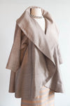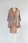 The matching swing jacket adds effortless mid-century glamour with its dramatic draped collar and fluid, open-front silhouette. Together, the set captures the sophistication of the era—perfect for daytime elegance or polished evening wear. Looks like something that Lilli Ann would have made, but alas the label is missing. In excellent condition, freshly dry cleaned and ready to wear.