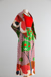 Fabulous Early 1970's Bold Scenic Bird Print Maxi Dress & Matching Shawl / M