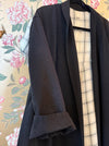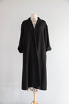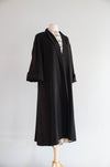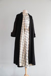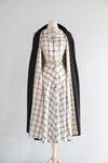 The coordinating black swing coat is cut with easy volume and a shawl-style collar, designed to drape effortlessly over the dress. Hidden pockets at the side. Understated and elegant, this beautifully coordinated set captures the polished, versatile style of early 1950s daywear.