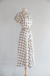 Absolutely fabulous early 1950's New Look era ivory silk plaid dress and matching jacket.