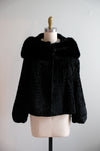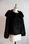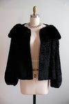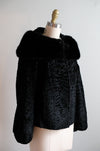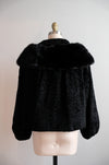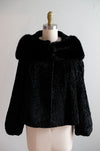 Vintage 1950's Black Persian Lamb & Mink Collar Fur Evening Jacket / S