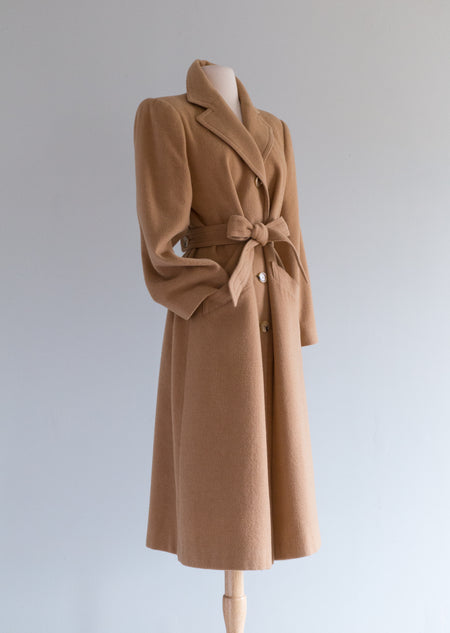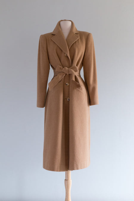 Classic Chic Vintage Long Line Camel Hair Coat With Belt / Medium