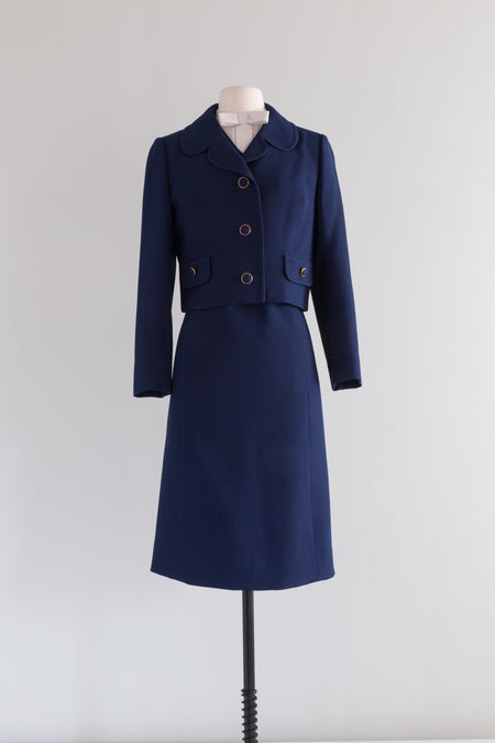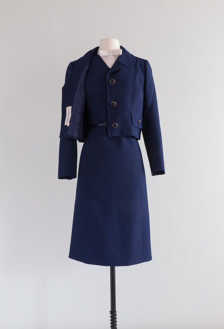Darling 1960's Navy Blue Dress & Jacket Set By Robert Leonard / ML