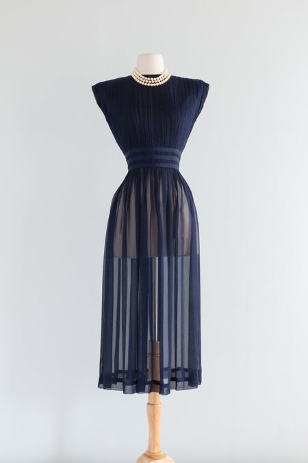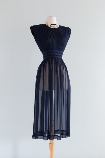 Gorgeous 1940's Midnight Blue Pleated Dress / Small