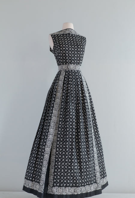 Elegant 1960's Calico Print Cotton Maxi Dress / Medium