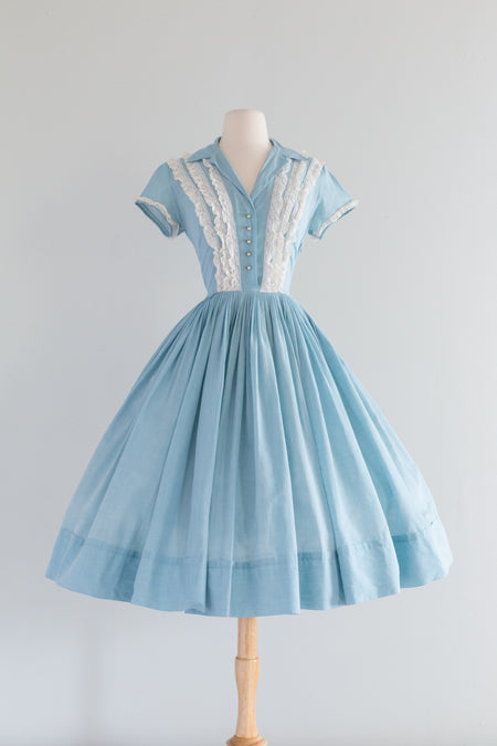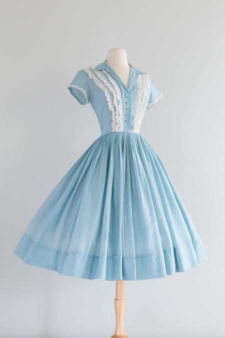 The Prettiest 1950's Cotton Voile & Lace Dress By Casino of California / Small