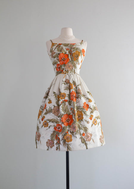Gorgeous 1962 Silk Chiffon Peach Rose Print Cocktail Dress / ML