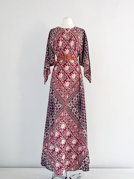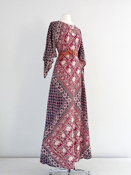1970's Indian Block Print Maxi Dress / Sz M