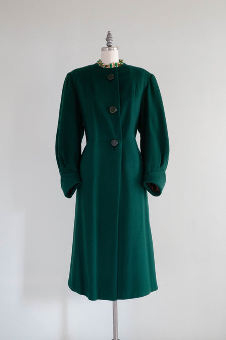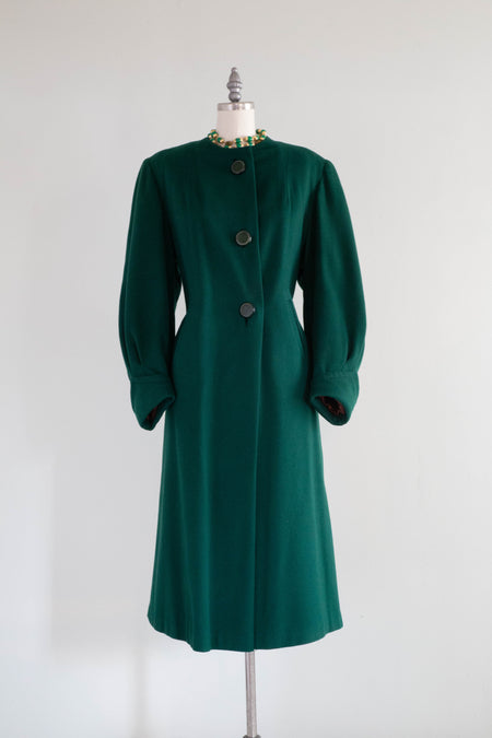 Elegant 1940's Ladies Evergreen Wool Overcoat / ML
