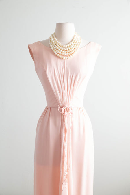 Elegant 1960's Peony Silk Chiffon Midi Length Evening Dress By Lee Claire / S