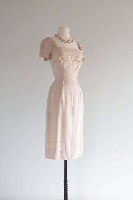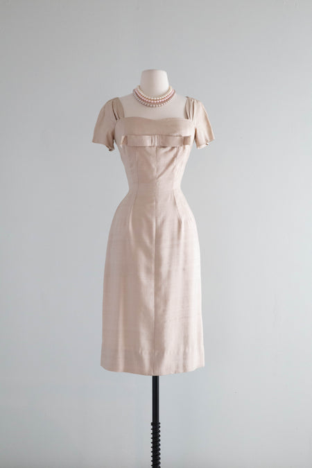 Elegant 1950's Oyster Silk Cocktail Dress From Neiman Marcus / Small