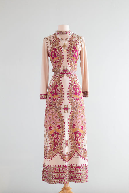 Fabulous 1960's Psychedelic Two Piece Set With Hot Pants / SM