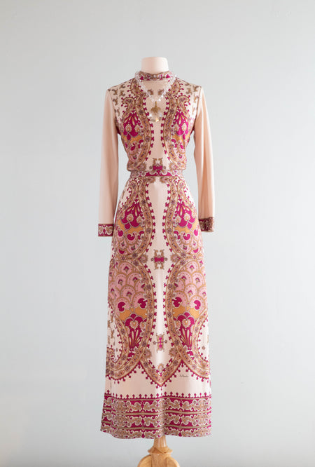Chic Vintage Pucci Silk Jersey 1970's Green Clover Dress By Emilio Pucci / Medium