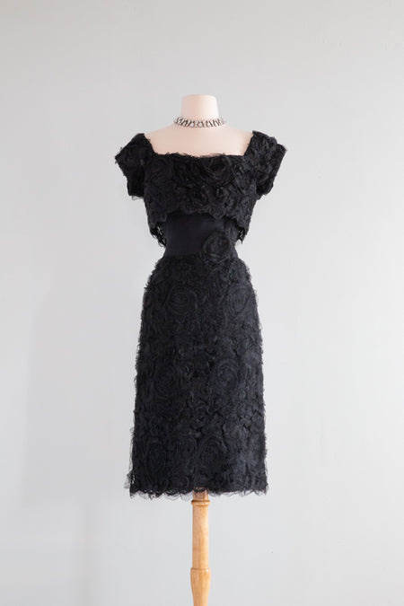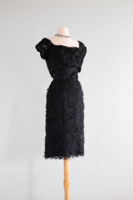 Gorgeous 1950's Sara Fredricks Black Soutache Rose Lace Cocktail Dress / Medium