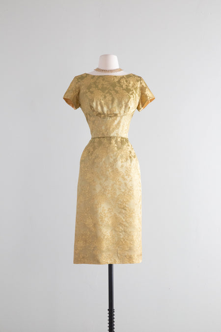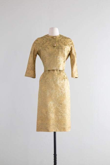 Glamorous 1950’s Golden Olive Brocade Cocktail Dress and Matching Jacket / M