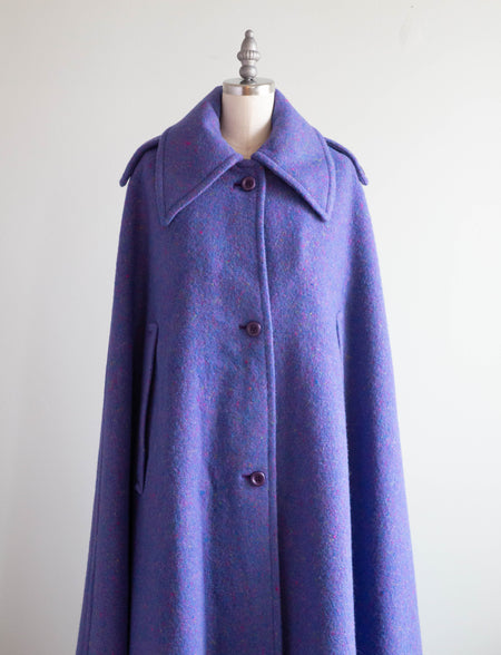 Fabulous 1970's Irish Wool Cape In Heather Periwinkle / OS