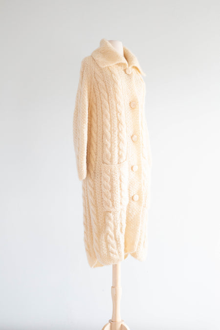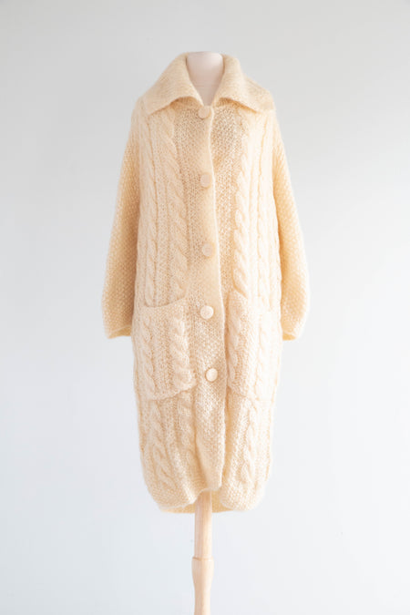 Fabulous 1960's Vanilla Hand Knit Mohair Oversized Cardigan / ML