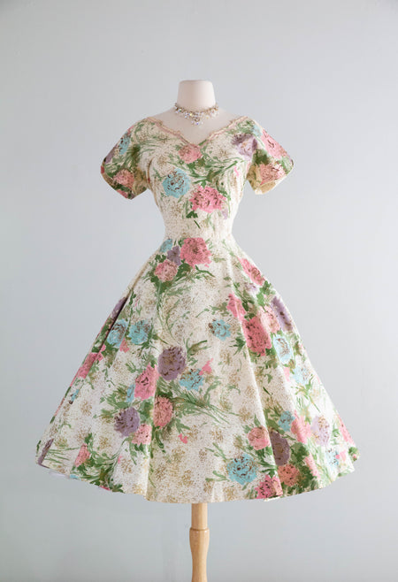 Sold Out Elegant 1960's Oyster Shantung Silk Cocktail Dress With Rhinestone & Crystal Embellished Collar / M $248.00