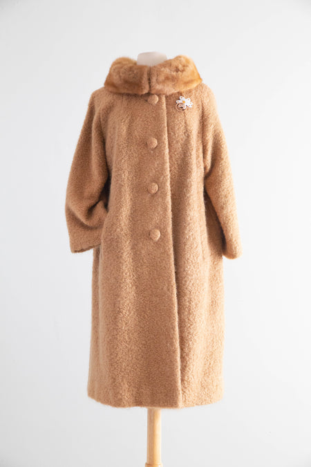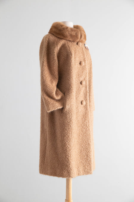 Elegant 1950s Lipman’s Carillon Wool Bouclé Coat with Mink Collar / ML