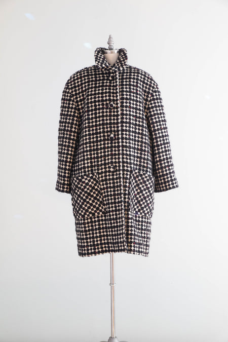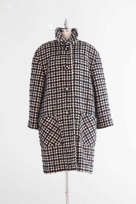 Fabulous 1980's Oversized Wool Geometric Pattern Coat & Skirt Set / SM