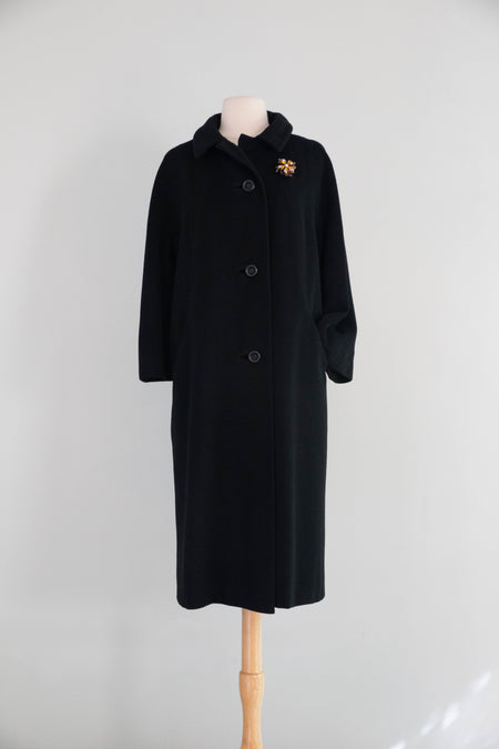 Elegant and Chic 1960's Black Cashmere Ladies Overcoat / ML