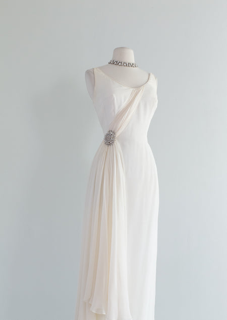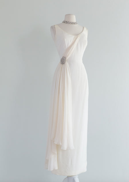 1950's Hollywood Glamour Gown in Ivory With Chiffon Sash / Waist 28"
