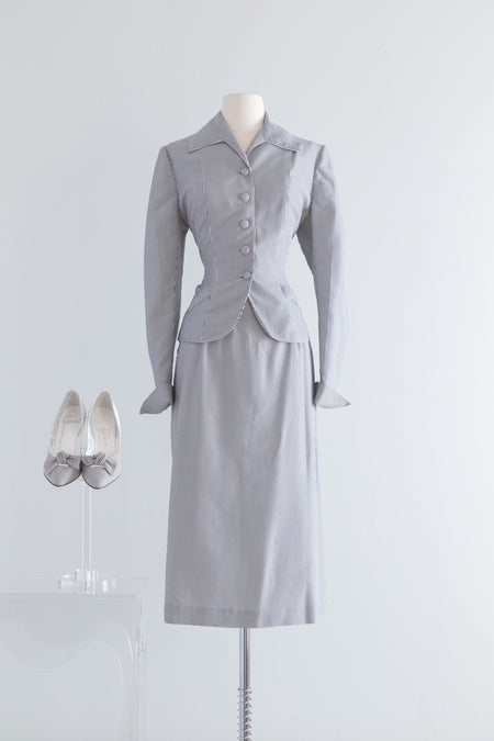 1950's Grey & White Seersucker Suit With Matching Shoes / Medium