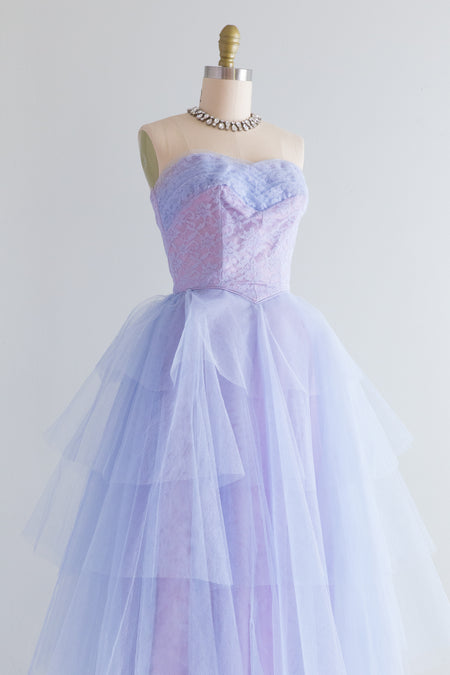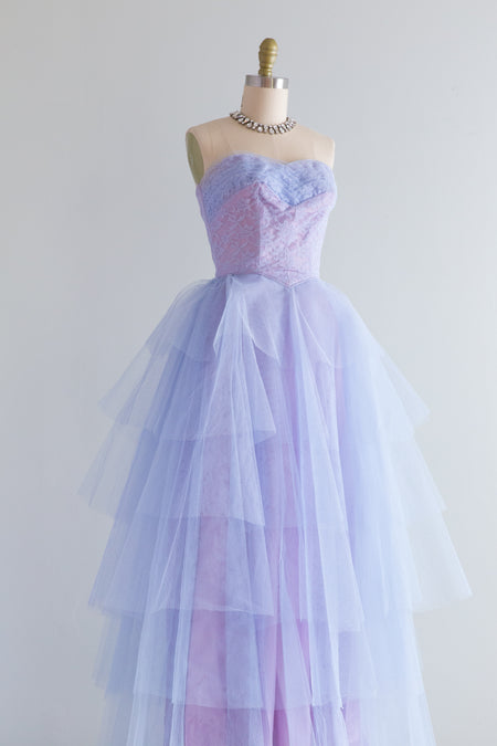 1950's Enchanted Blue Violet Strapless Tiered Prom Gown / XXS