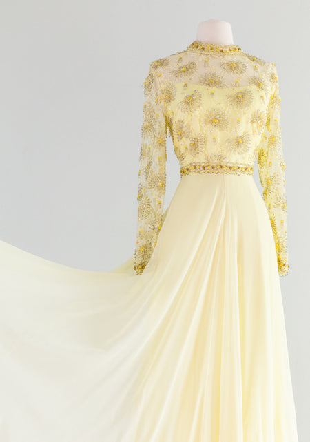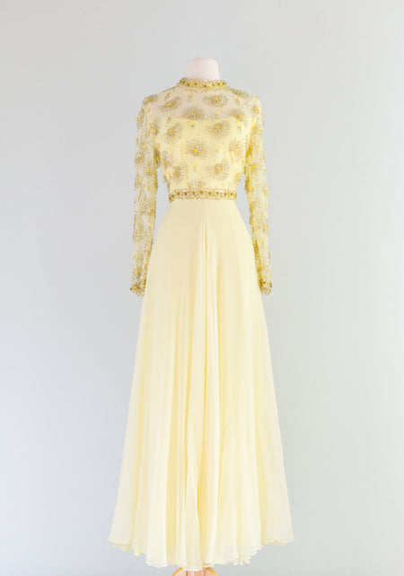 1960's Yellow Chiffon Sun Goddess Evening Gown / Medium