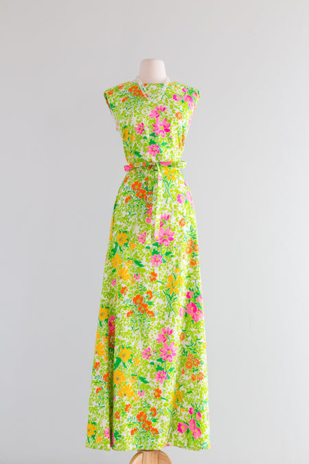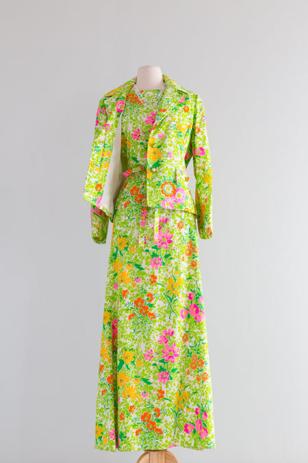 Fabulous 1960's Garden Party Maxi Dress & Matching Jacket / ML