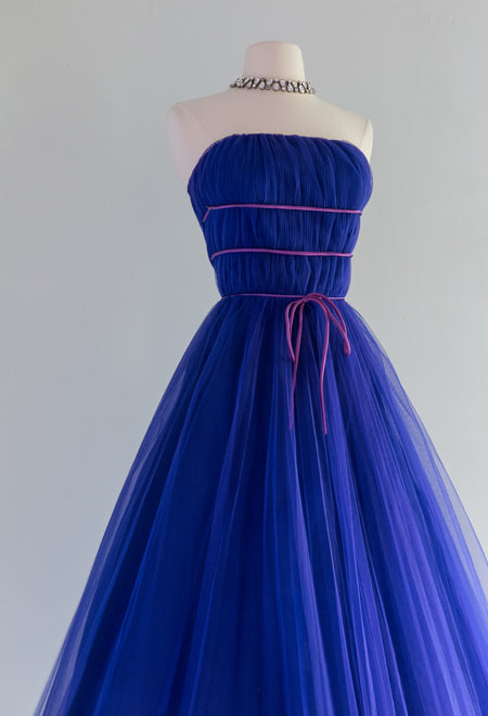 Divine 1950's Yves Klein Blue Pleated Strapless Prom Dress / Small