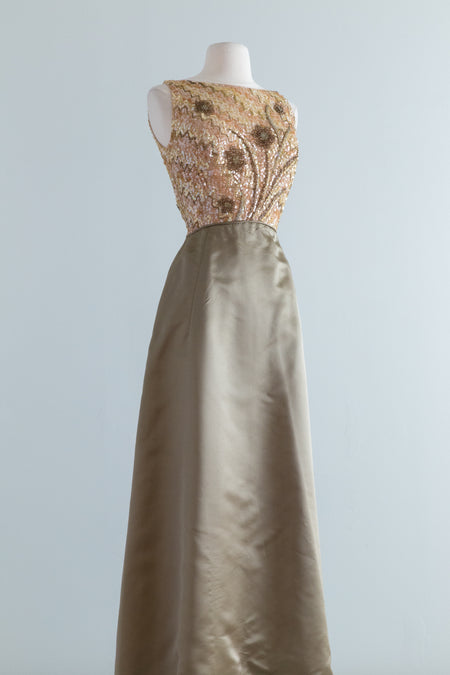 Sold Out Iconic 1960's Pleated Chiffon Cocktail Dress With Crystal Illusion Bodice By Jack Bryan / Small $348.00