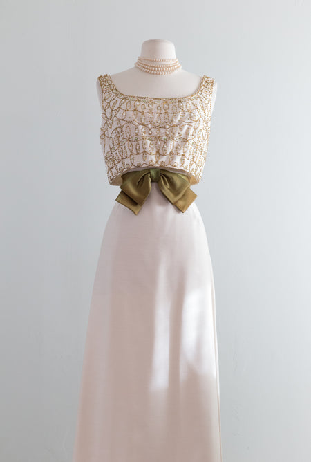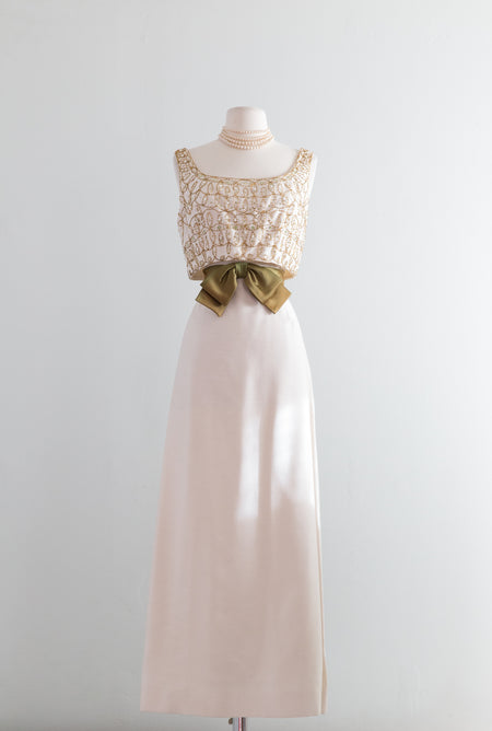 Elegant 1960's Ivory Beaded Evening Gown From Bonwit Teller / Waist 27