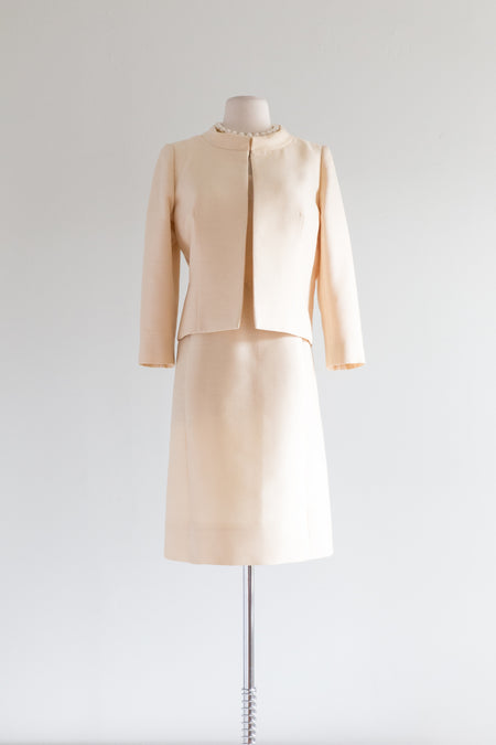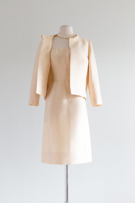 Elegant 1960's Ivory Silk Cocktail Dress & Jacket By Harvey Berin / Small