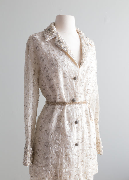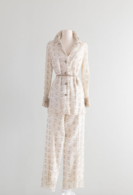 Fabulous 1960's Fully Beaded Two Piece Pant Suit / Medium