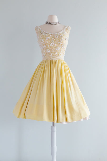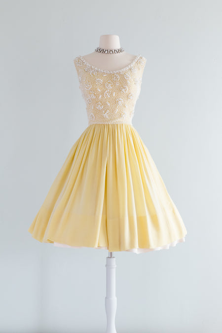 Elegant Early 1960's Lemon Silk Chiffon Dress By Harvey Berin / Small