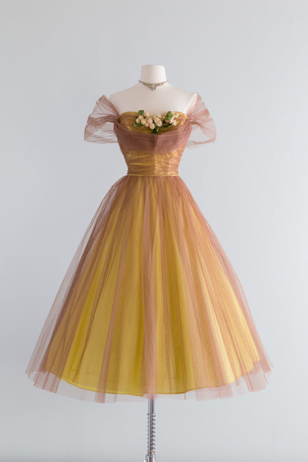 Sold Out Fabulous 1960's Cerise Pink Chiffon Ruffled Evening Dress By Mollie Parnis / Waist 28 $348.00