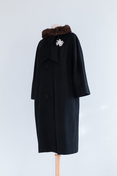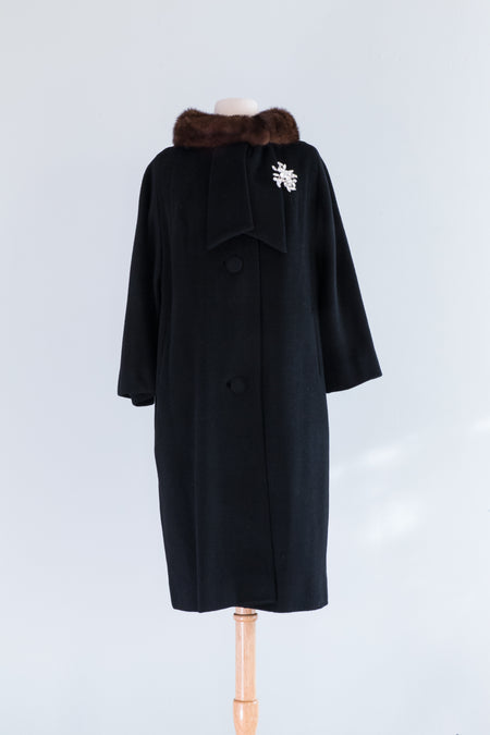 Classic 1950's Lilli Ann Black Wool Coat With Mink Collar / ML