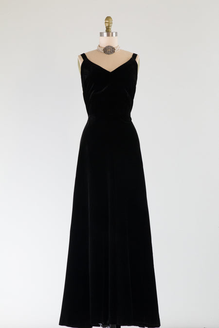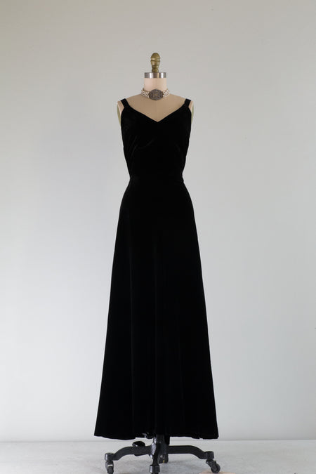 Elegant 1930's Black Silk Couture Evening Gown / Small