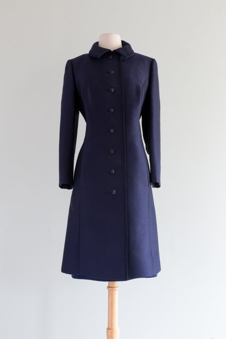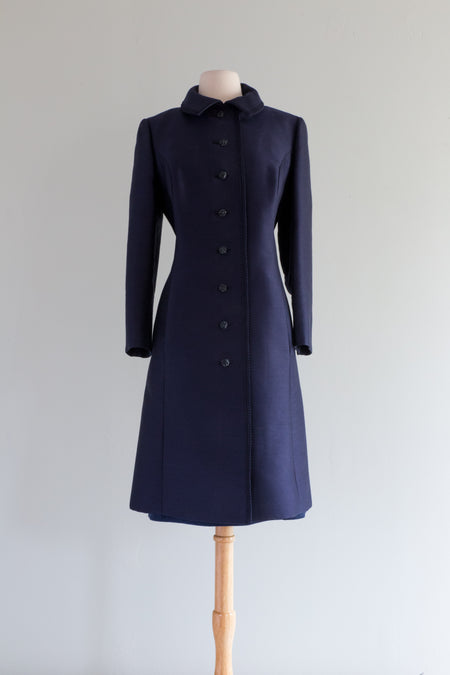 Elegant 1960's Navy Blue Silk Evening Coat By Robert Leonard / ML