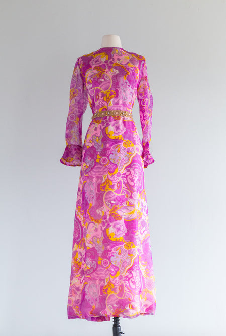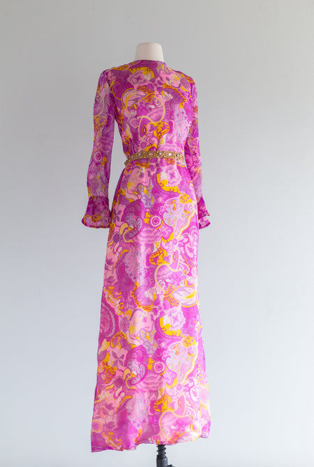 Fabulous 1960's Kornhauser Psychedelic Silk Evening Gown / ML