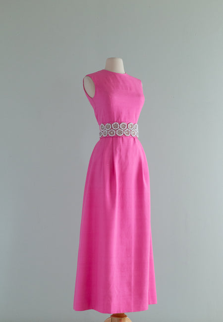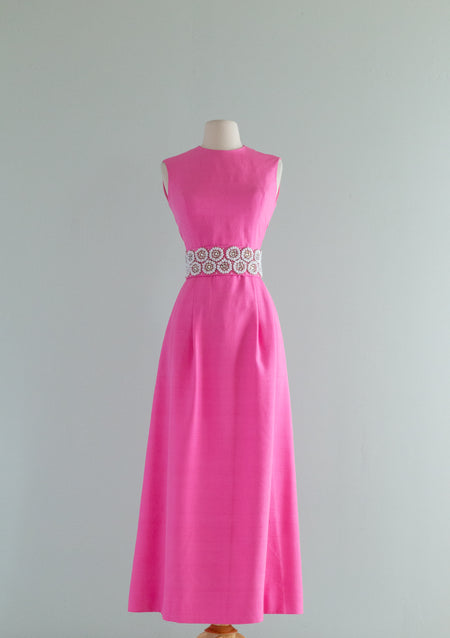Fabulous 1960's Shocking Pink Silk Gown By Dynasty / SM