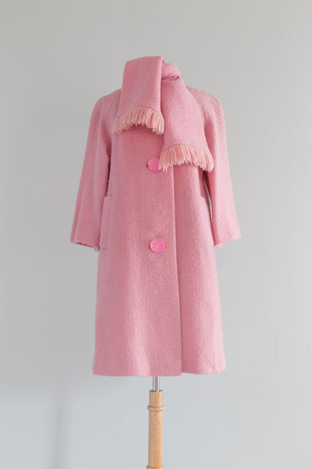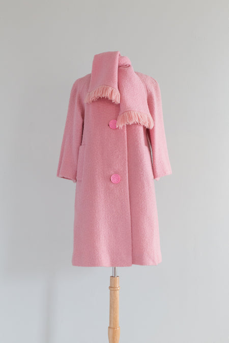 Fabulous 1960's Bubble Gum Pink Spring Coat With Scarf / Medium