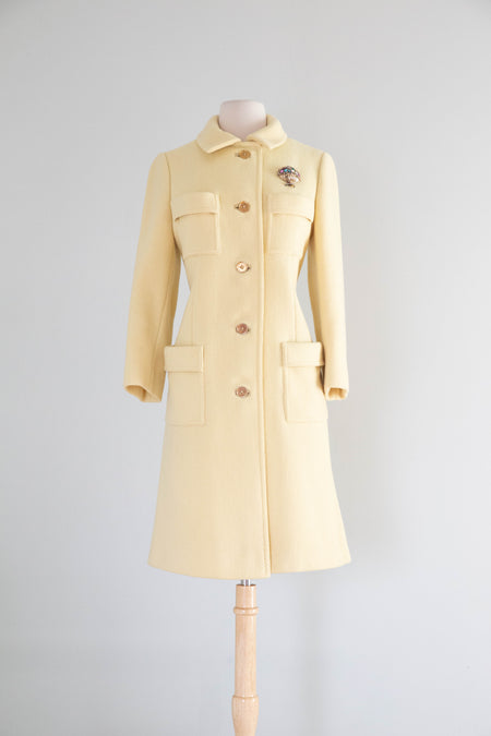 Timeless Chic 1960's Chanel Inspired Butter Yellow Wool Coat By Bardley / M