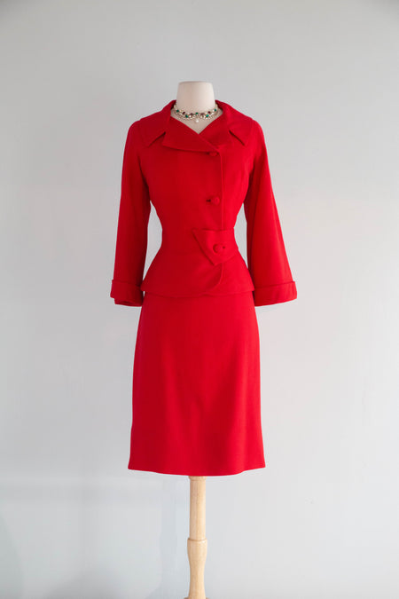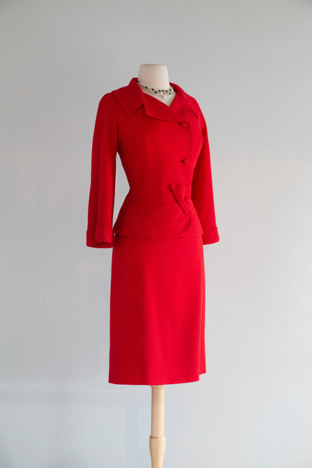 Classic 1950's Don Loper of Beverly Hills Cherry Red Wool Suit / SM