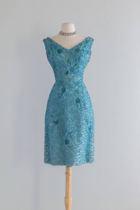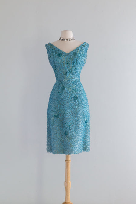 Sold Out Exquisite 1950's Steel Blue & Metallic Gold Lace Cocktail Dress By Edith Small / Medium $375.00